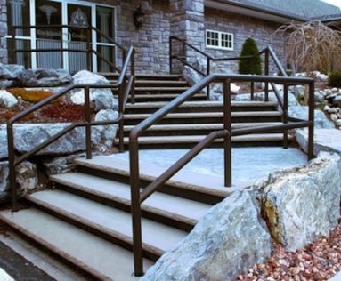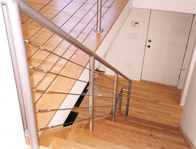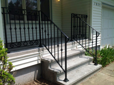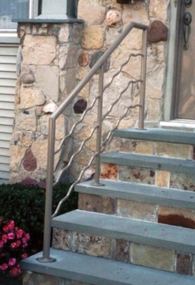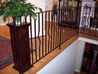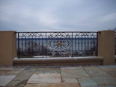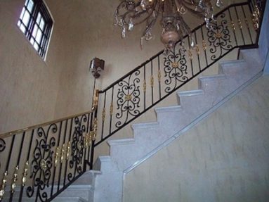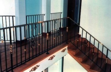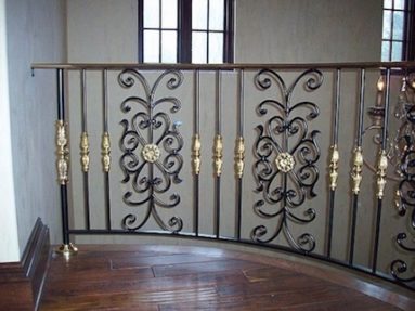 Custom Made Ornamental Railings: Samples of out custom railings. Cable rails, rails with brass accents, special forged bars, forged designs, interior and exterior, steel and aluminum.